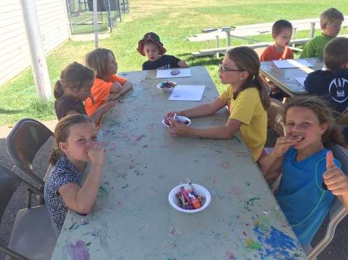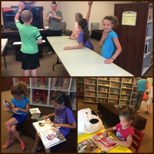 At home after the camps were done, we came home (I watched a couple of kids and a couple more came over to play) and I sat down for a while and read a book. 🙂 It was amazing! I took my oldest to the library for art time for the 3rd-6th graders. She really enjoys and is really great at art!