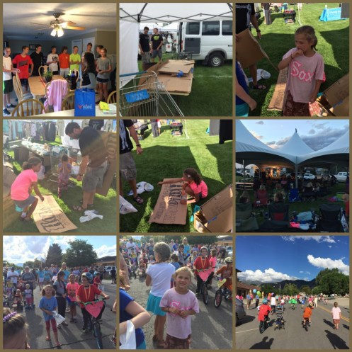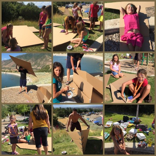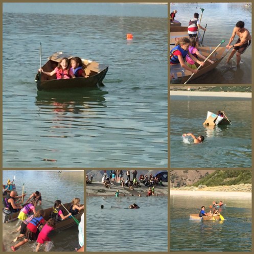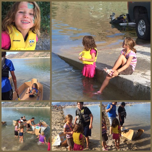 After that we went to the resivor for the boat regatta. All 4 of my girls are signed up with a cousin to make their boat out of cardboard and duct tape. We were given 2 hours to build these boats. With Corom, Sarah (Corom’s mom), aunt Mary & I we were able to get these boats ready in time.