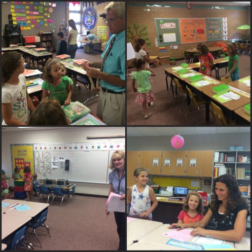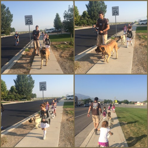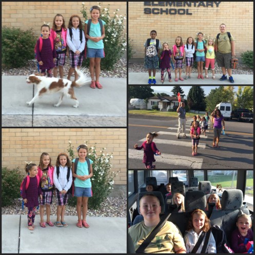 Wednesday: My coach changed a few things for me this week… I decided to sue the half ironman relay race this Saturday, so he changed things to help me recover enough before the 1/2 marathon. I ran a 10 mile easy run. I felt better than yesterday but still not feeling the best. But I know it will click. I did get back in time for the girls to be waking up for their 1st day of school. The 3 older girls were so excited! My youngest not so much! She doesn’t start kindergarten until next week… She is so ready to start school! But we drove all the kids (and neighbor kids) to school. Of course when we took the 1st pic of the girls, a dog ran right into the pic. 🙂 (Then Corom let the dog into the school just to be funny!)