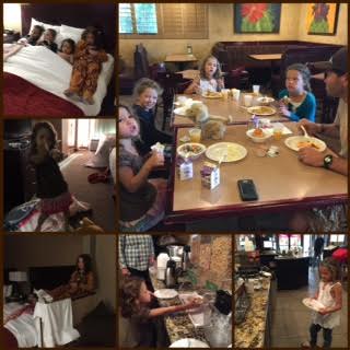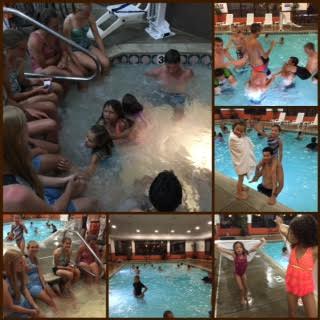 We hopped on the bus and drove to our hotel. There I met up with Corom and the girls. Coach Thompson went and grabbed pizza for everyone… we ate pizza and swam until the 10 p.m. close time. Shortly after was bed checks and bedtime for me and my family. A very late night for my kids but they were really good and loving it.