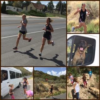 I didn’t want to run this trail because I still had my workout to do for the day… I was a little stressed over it. As soon as I came home, I went out for my run (12:30 p.m.) Oh it was hard!! First off, to start off that late; second, the heat was bad; third, of course it had to be windy; and fourth, I was tired from the 5 miles I did earlier… I had to run 18 miles with the last 10 at race pace. I actually didn’t finish the whole workout. 😦 The 1st 8 was great… I averaged about a 7:15-7:20 pace with the last 5 all uphill- up Payson Canyon) and even the next 6 were good tempoing down the canyon. I ran at least 10-15 seconds faster than race pace because I was going downhill. Corom brought me water right around mile 11 (I was beginning to feel a little dehydrated so I knew I would be struggling soon). I ended up carrying the water bottle the rest of my run and it still wasn’t enough. Haley, one of the CC girls met up with me for the last 3 of my tempo miles and the last 2 cool down miles. She helped me a lot!!! To wrap this up… I only ran 8 miles up and a 6 mile tempo with a 2 mile recovery. I had nothing left in me. 16 miles total (instead of the 18) and a 6 mile tempo (instead of the 10 mile tempo). I do take in account that I went out with the CC kids but it was broken up mileage. I was happy to be done though. But I really was glad to see Haley running up the canyon as I was coming down. 🙂