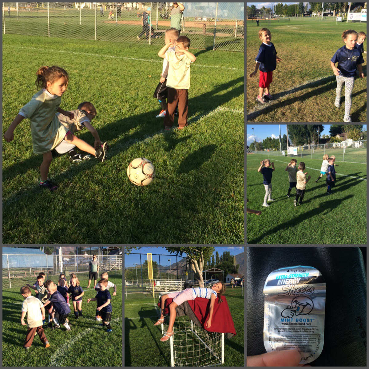 The girls and I did homework, reading and dinner, then headed off to the 3 younger girl’s soccer games. Just before we left, I saw an empty caffeine strip wrapper on the floor. This strip is full of caffeine and made for long workouts!! I got in the car and asked what child took it… My 2 younger ones finally confessed that they shared it. Well, these soccer games should be interesting…
