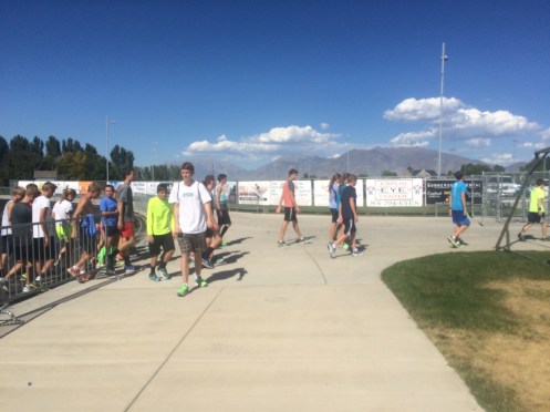 Wednesday: I had a 10 mile workout today… 5 miles of it a speed workout. 20 x 200’s in a 42 sec time per 200 with a 200 recovery in a minute. It went well. I was tired (my chest felt heavy) but I averaged about a 39-40 sec 200 for all 20. We met at the school for PTO stuff. For CC practice, they went on a easy day before the race run.