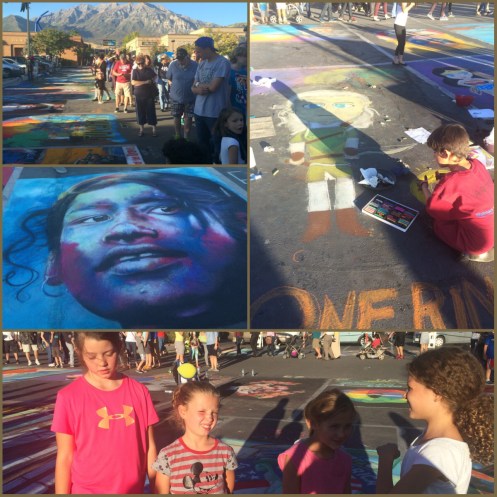 Corom stayed while the Barney’s and I took the girls to some major chalk art display thing. It was pretty cool… A lot of people!