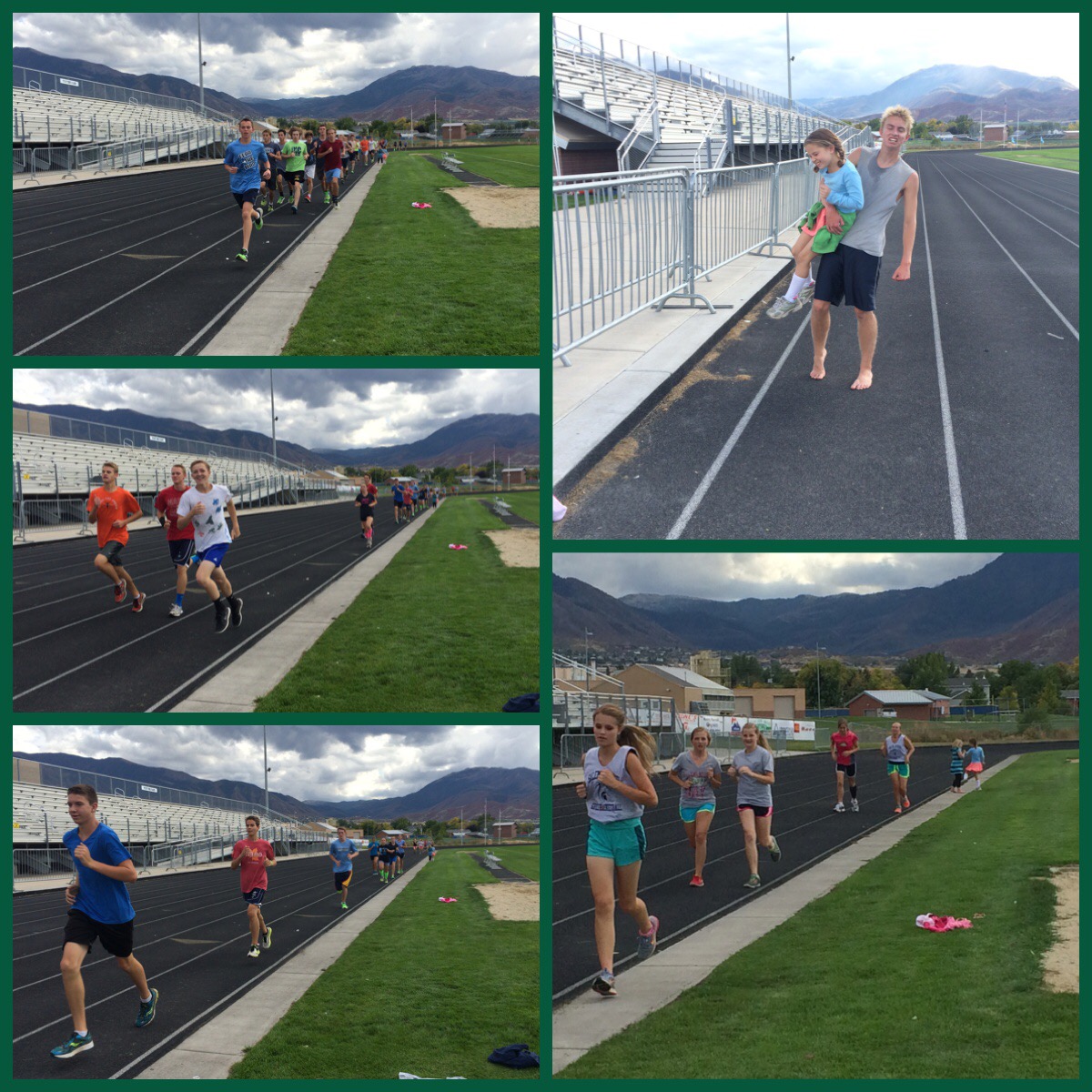Wednesday: Today was a 10 miler with 4 x 1 miles. My 1st mile was a 6:17, 2nd was a 6:07, 3rd was a 6:03 and 4th was a 5:55. I was supposed to do a 6:15, 6:10, 6:05 and a 6. Pretty close… I felt good on this run. My legs were a little heavy and sore towards the end but that’s normal (I hope) with tapering. I had to do some PTO stuff with the school, then headed over to the Beehive home (old folks center) for visiting and a spiritual message. The elderly ladies want our church to come every Wednesday, so 2 months out of the year our ward goes in.  Always fun talking with the elderly ladies.
