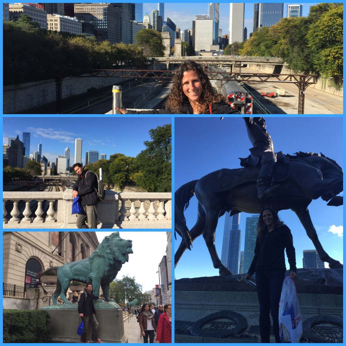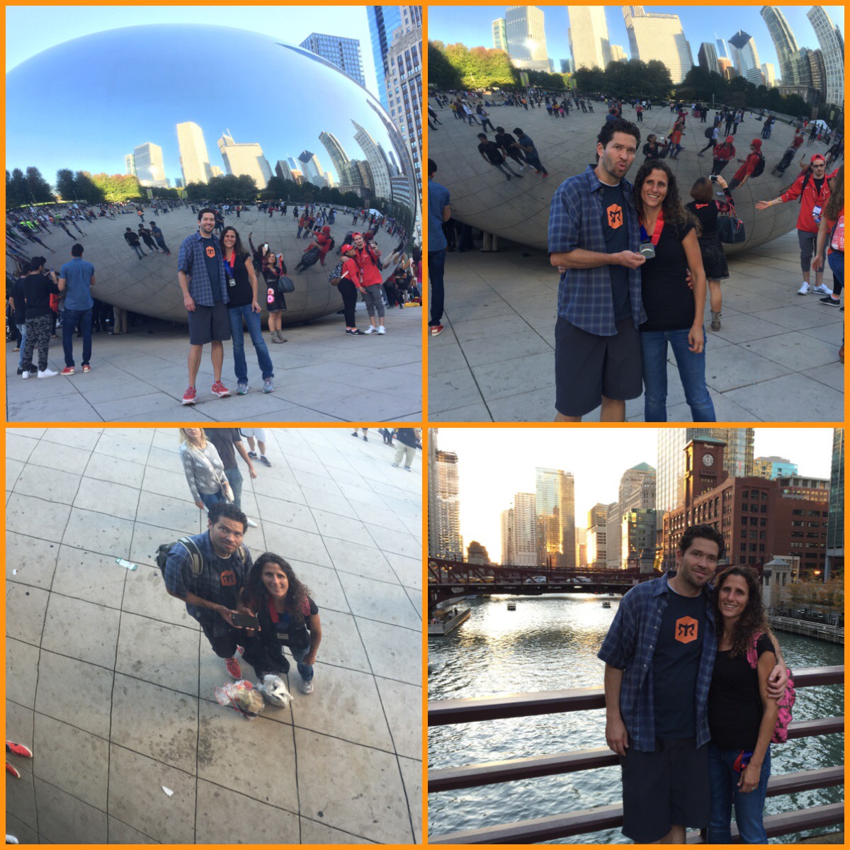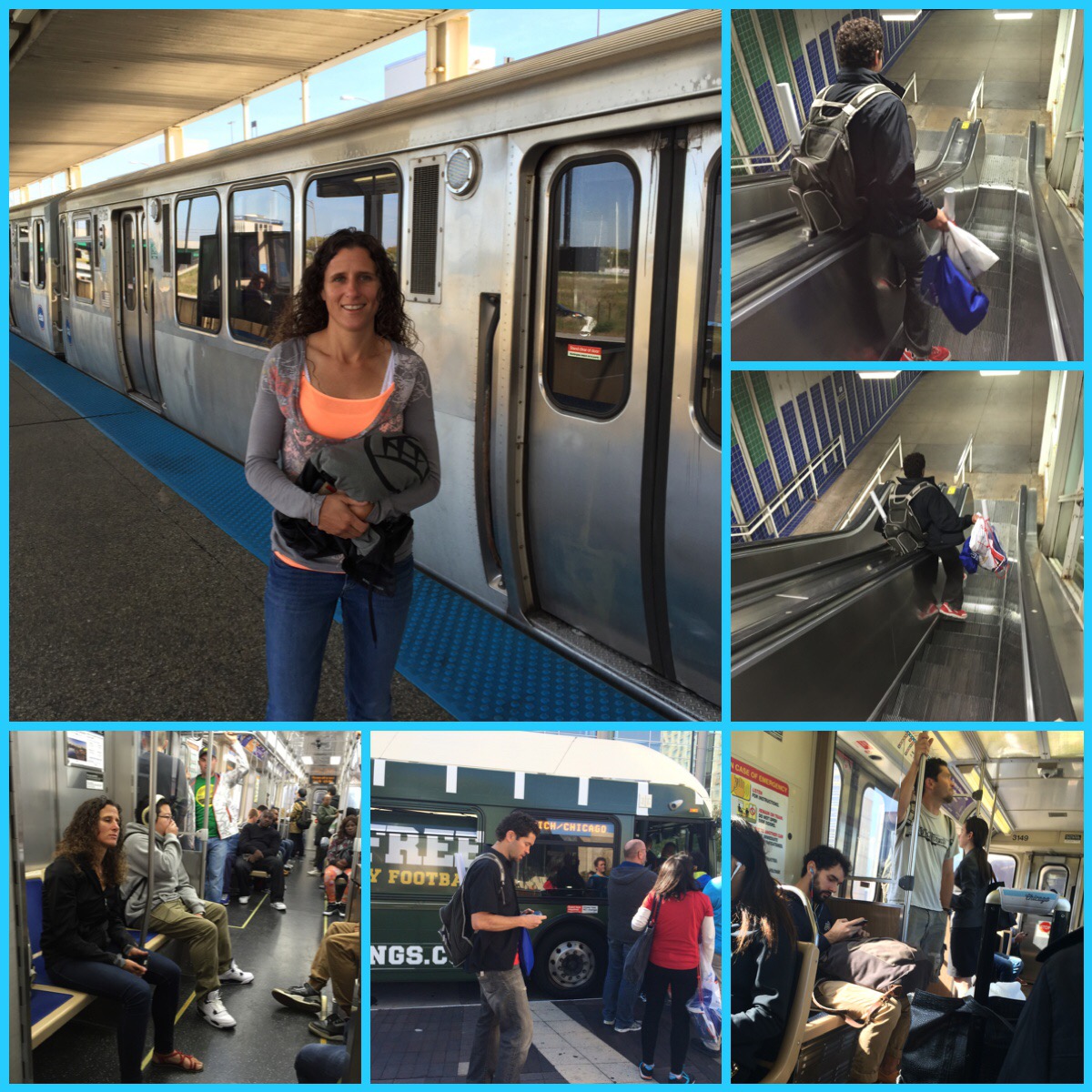 We ate a great breakfast at the hotel (met a lot of runners from around the country and world). Chicago marathon I guess is kind of a big deal. 😉 We decided to walk to the train station (instead of taking the shuttle there). We took the wrong sidewalk and ended up on the freeway… We ran down the field and hopped the fence. Corom fell and hurt himself. I could not stop laughing! So funny.