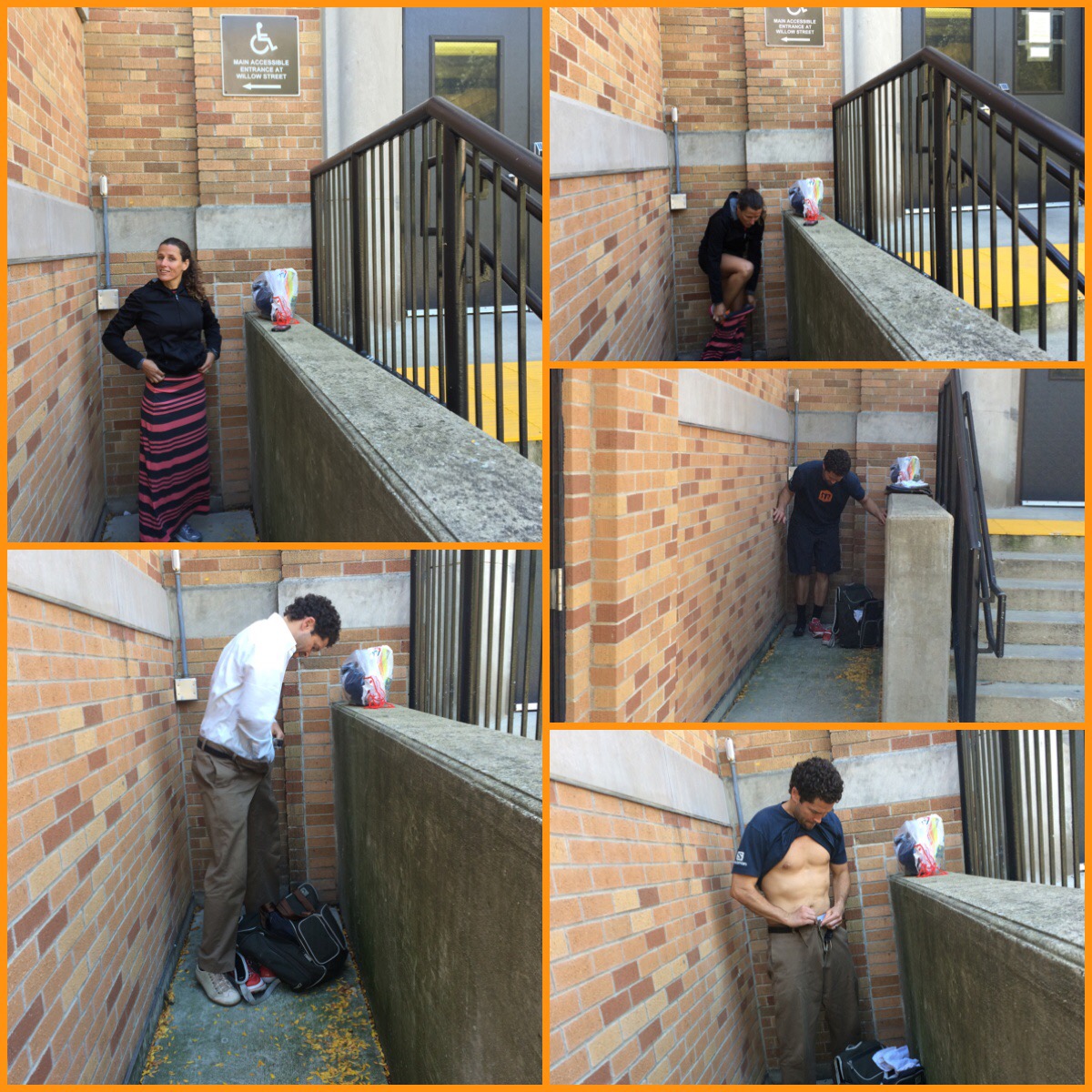After we headed out from the race tent, Corom and I hurried to the train and found their local LDS (Mormon) church. I just threw on a skirt over my shorts and a nice shirt over my top… Corom changed quickly, too (obviously in the corner).