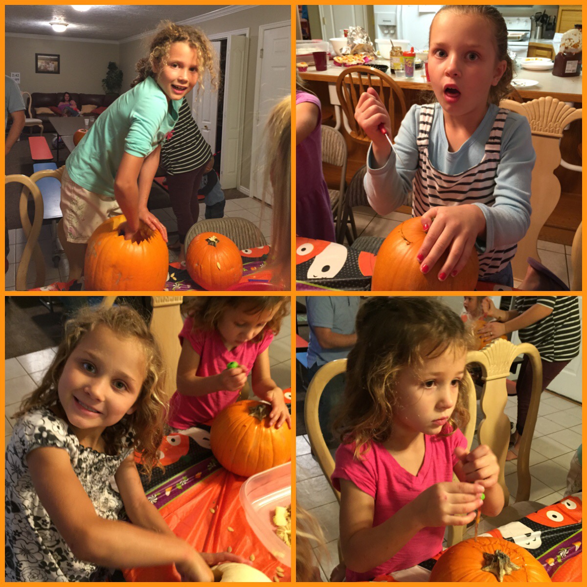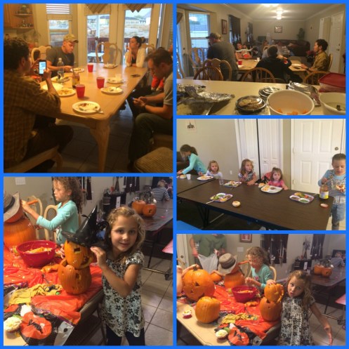 We had 4 families over for dinner and the fun times of carving pumpkins. 🙂 The kids had a blast.