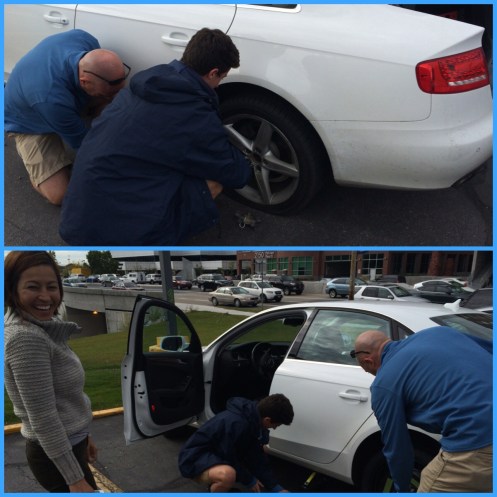Before the races began, a couple of us (the other coach I coach with and runners not competing) went out to lunch. There was a lady that had a flat tire in the parking lot. So of course I volunteered the 2 of them to change her tire. She was a great lady. Lunch was good, too!