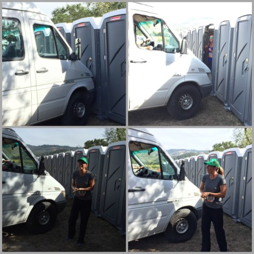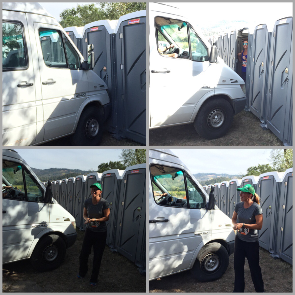 I did warn Ashley early on in this Ragnar adventure never to let Corom know what bathroom you would be in… Well as you can see, she made the mistake of letting him know. 😊 He did give it a little nudge just to let her know we were there… She said she nearly “peed her pants” because she realized what was going on. The poor other stall person… That lady tried to come out but was stuck, too. :/ We couldn’t stop laughing.  The running part was fun, too, I guess…