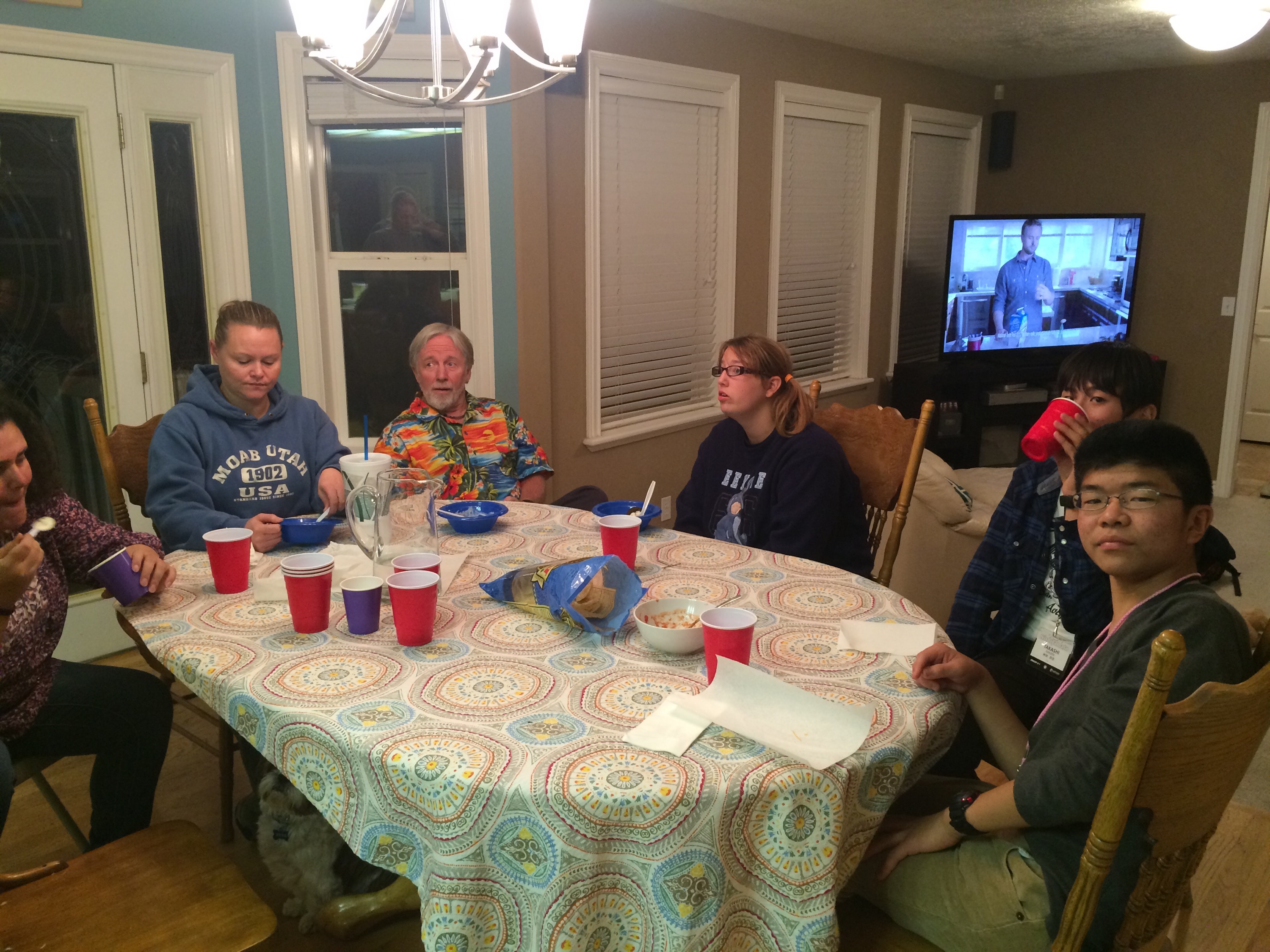 They were troopers. Corom went to BYU right after work to pick up a couple of 15 year old Japanese boys that will be staying with us (well one is with us and the other is with my mother in law). We will have him for a week.  We went straight to Michelle and Ingrid’s house for dinner…