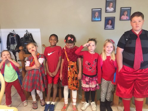 Monday: I went out and ran an easy 8 miles.  My legs were tired from the weekend, so a nice easy run felt good. The kids had to wear red to school today. It’s Red Ribbon week and the week is filled with fun activities and prizes (at their school).