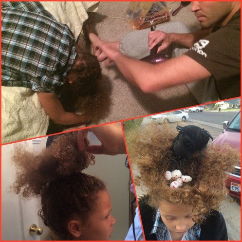 My oldest wanted a bird’s nest… It turned out pretty good. She was sent to the office to get her picture taken this morning. My carpool and their hair do… The office ladies and their cute hair!