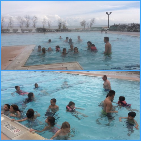 We took all the kids to the heated (hot springs) swimming pool. The dads stayed while U.S. Girls went shopping. It’s says a lot about swimming (in the cold) when I would rather go shopping.