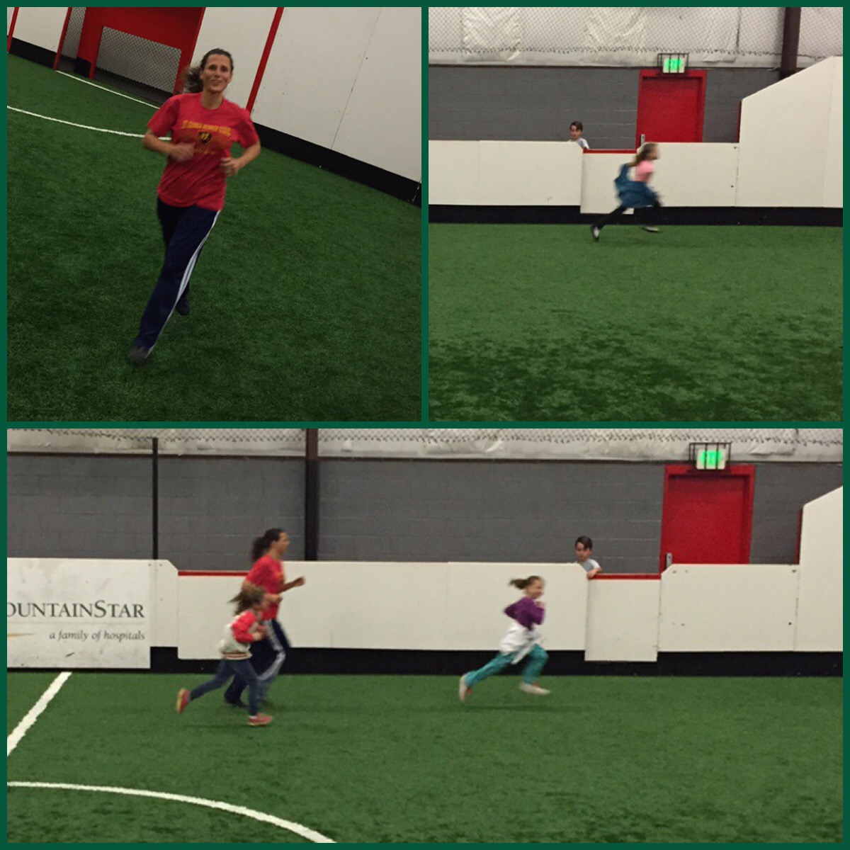 We had family night and then all of us went to my indoor soccer game. We lost really bad but it was fun playing! (I think the score was 15 to 6.) We were a bunch of old ladies playing against young recently graduated girls. It was tough but way fun!