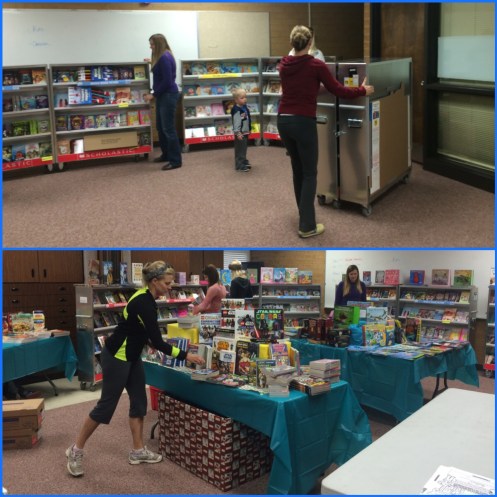 Monday Dec 7th: My youngest woke up this morning and asked if dad and I were ever going to break up. I looked at her and said, No and  I don’t plan on it. She then said well, if you ever do I want to live with dad. :/ 1st off where does she even hear/know this stuff. She is only 5 and 2nd, fine, whatever! 😂 Corom and I laughed about it… She is a little spitfire. (The other day, I was combing her hair and she turned to me and said, mom, when I turn ten you will be dead. 😁 What do you say to that?) Anyway… I took the girls and all the kids I drive, to school. I stayed for our PTO meeting and then we set up for the Book Fair.