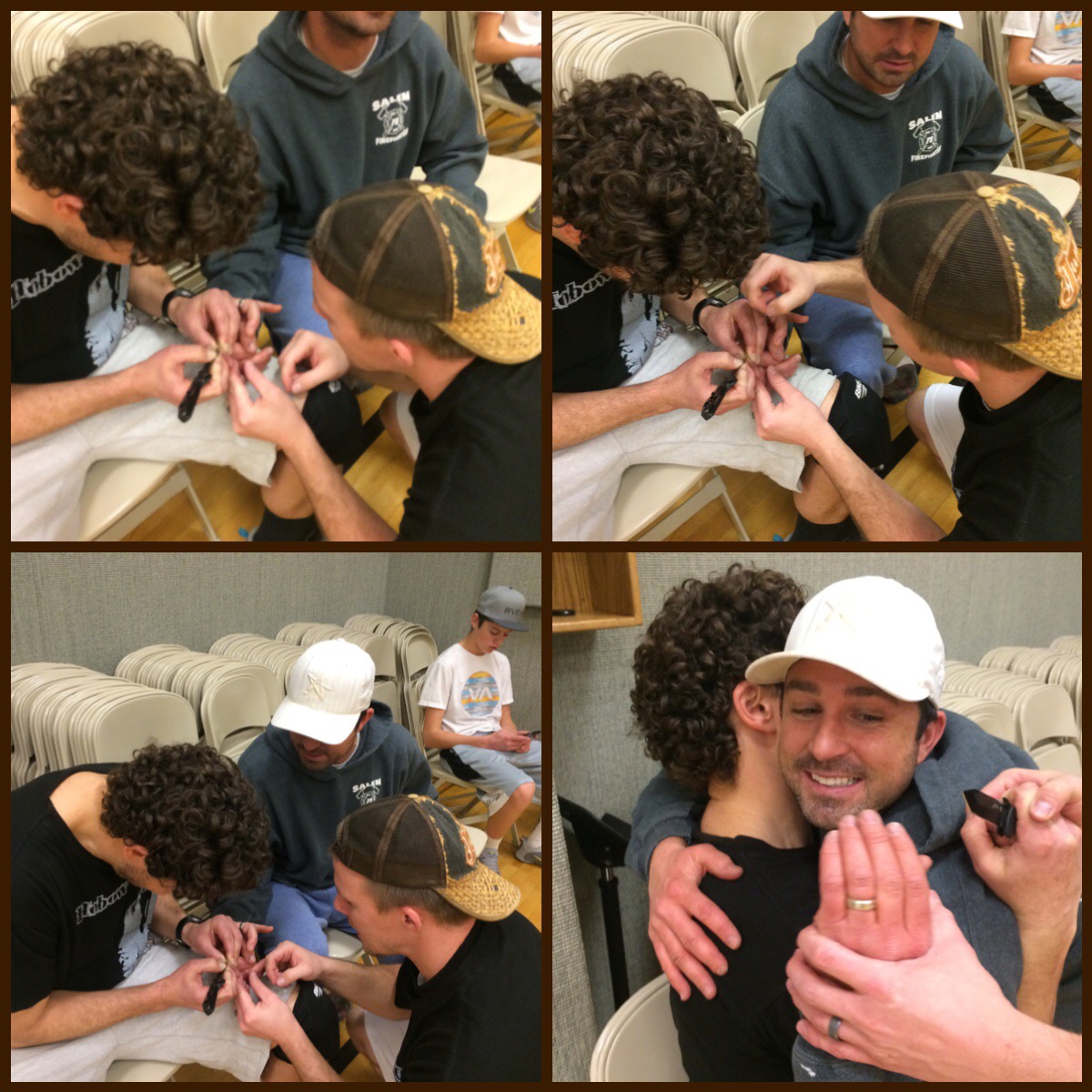 Jeff had a little owie, so Corom and Travis took care of it… It was actually a big splinter. But they seriously are the biggest dorks!