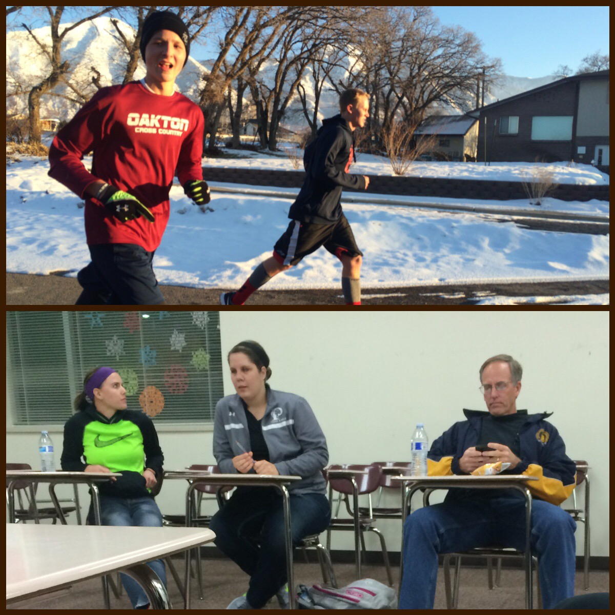 Monday Jan 11th: I dropped the girls and neighbor kids off at school and then went on an 8 mile run. It felt great. Later that day I went to track practice and sent the kids off on a run. We had a coaches meeting shorty after with a dinner before the meeting.