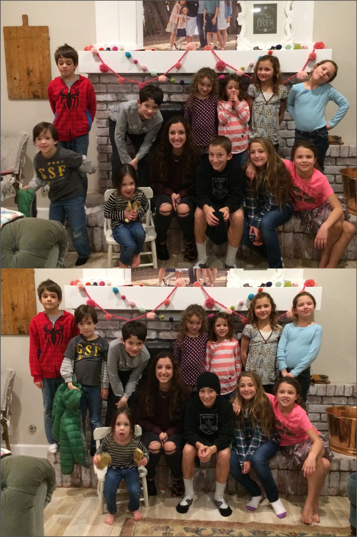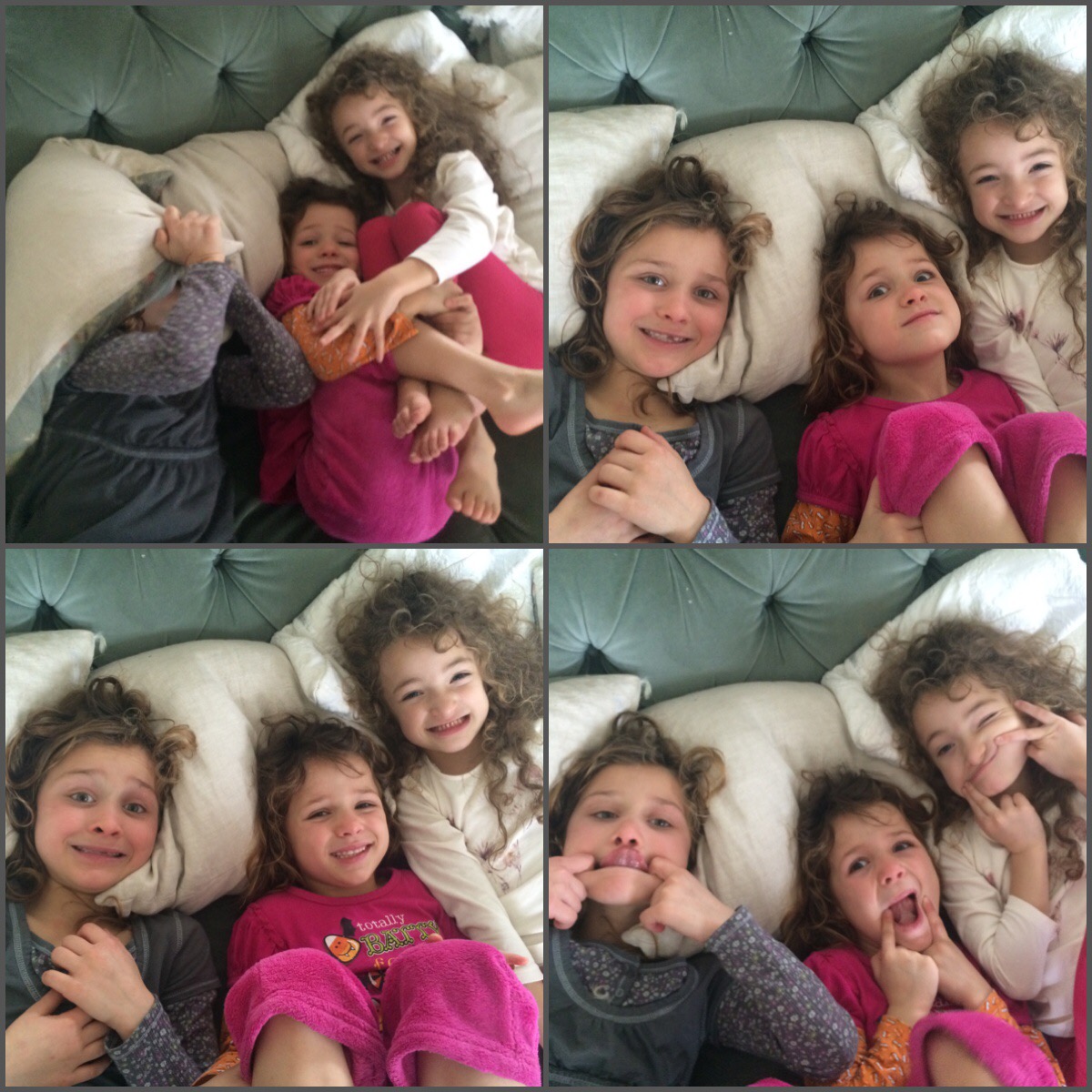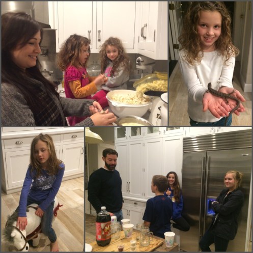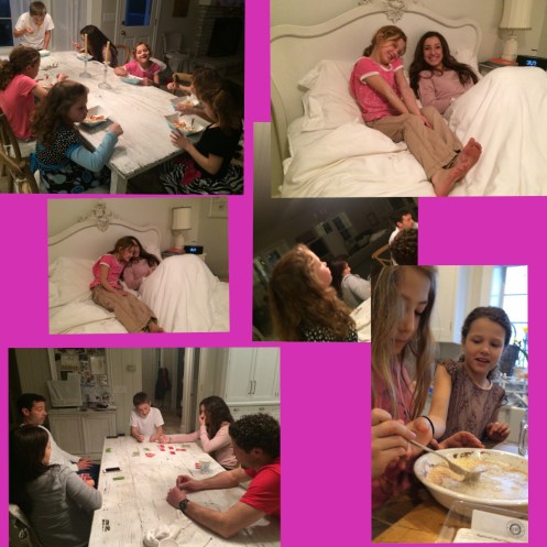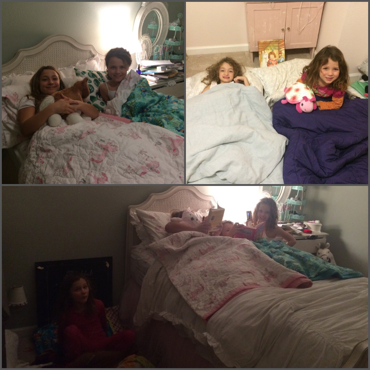 The older kids and adults watched the movie “The Visit”. It was a good “scary” movie. The girls went to bed and of course all wanted to sleep with their cousins… So my 3 older girls slept in with their one cousin (she is 9… Just 5 days older than my oldest) and my youngest slept with her other cousin (they are a day apart).