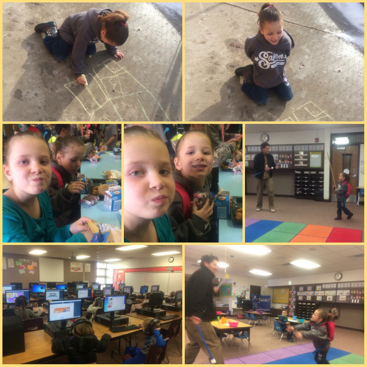 Tuesday Jan 19th: I actually got up at 5:15 to go out for a 7 1/2 mile run with Beth. It felt good. I subbed in the other kindergarten class (not my daughters)… This was a full day assignment. She teaches 2 classes. It was so fun to have my kids come visit all day. It was also fun to see my kindergartener as we sometimes did things with the other class.
