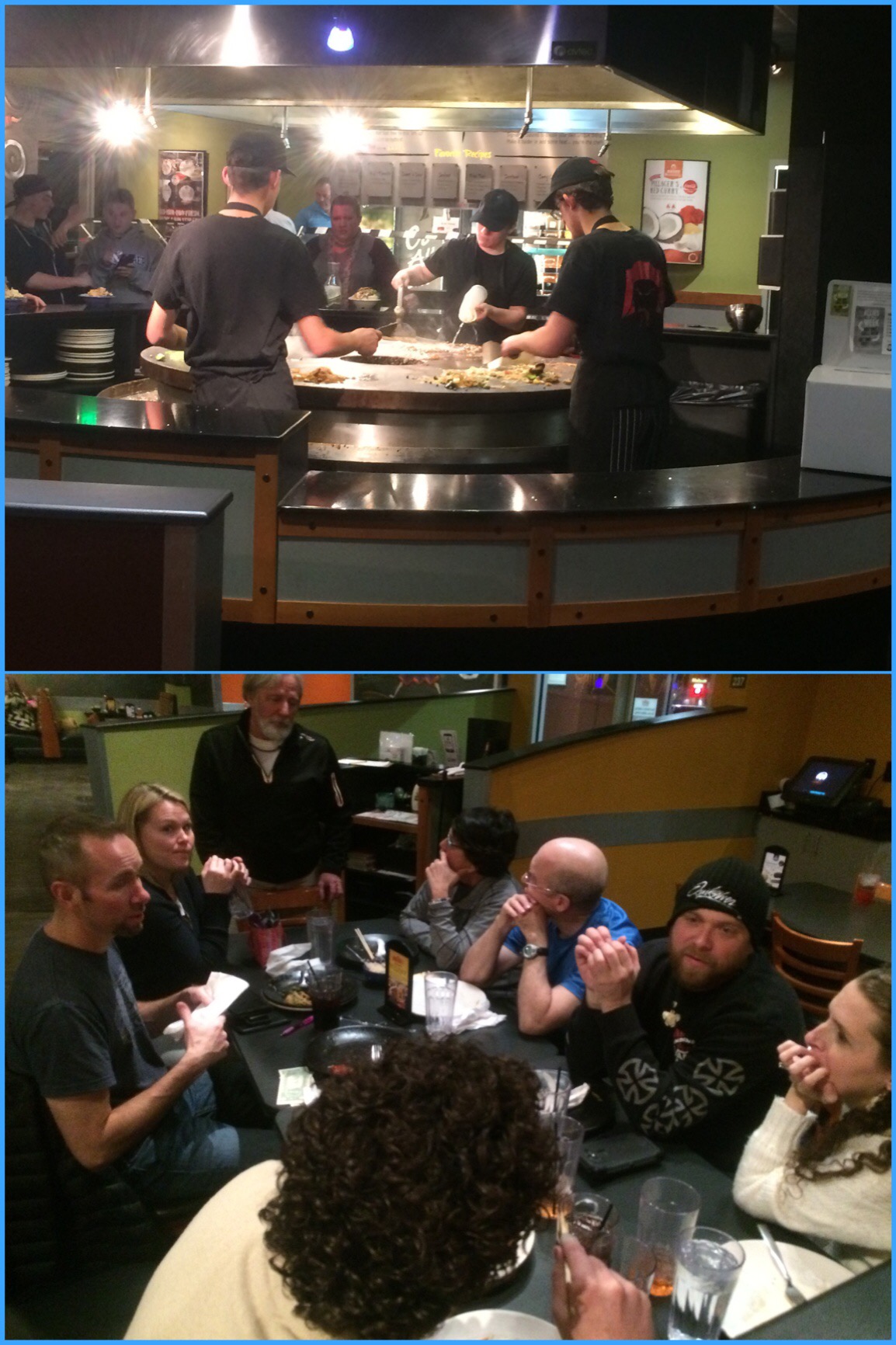 And then Corom and I met up with the Fullmer’s, 4 of the Booths and Gary at Hu Hot’s for dinner. It is Amy’s birthday and we are planning our annual adult kayaking trip.
