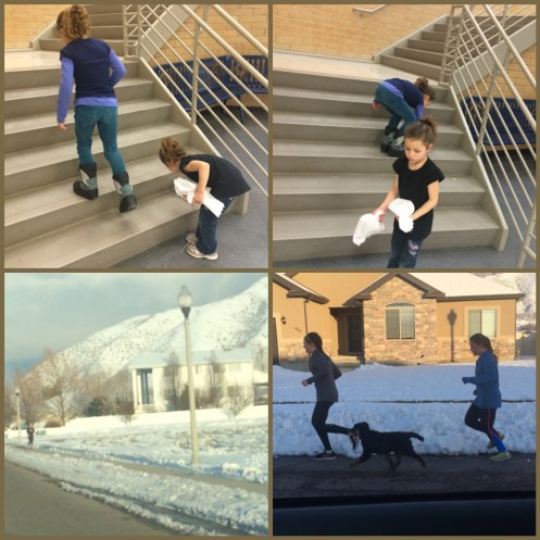 Monday Jan 25th: I went out for a 8 mile run… Took the girls and neighbor kids to school (the girls were goofing off this morning),