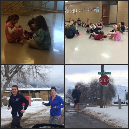 Friday Jan 29th: I went out for an 7-8 mile run and then came home to wake the household up. I took all the kids (my kids and neighbor kids) to school and stayed to help with an assembly.