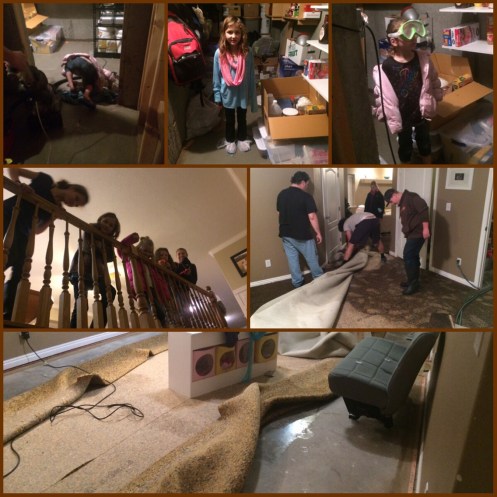 We had a pipe burst. It froze with the freezing cold temperatures… good thing Corom was sitting on the toilet at the time it burst. He jumped up, ran downstairs and shut our water off. We had to go without water for about 24 hours. He found the place where it burst and he and Mike fixed it. Then later our basement flooded due to rain and construction issues. 😉