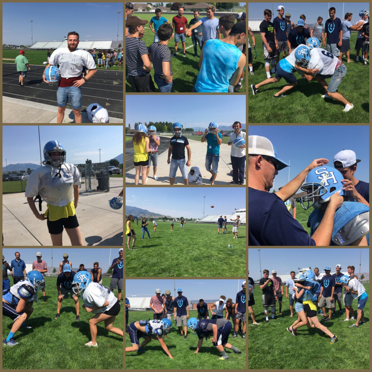 …and then taught them American football. Salem Hills HS’s football team came out after one of their practices and spent the next hour or so with the Georgians and 2 other countries. Great group of kids (all around)… Some of them really got into it.