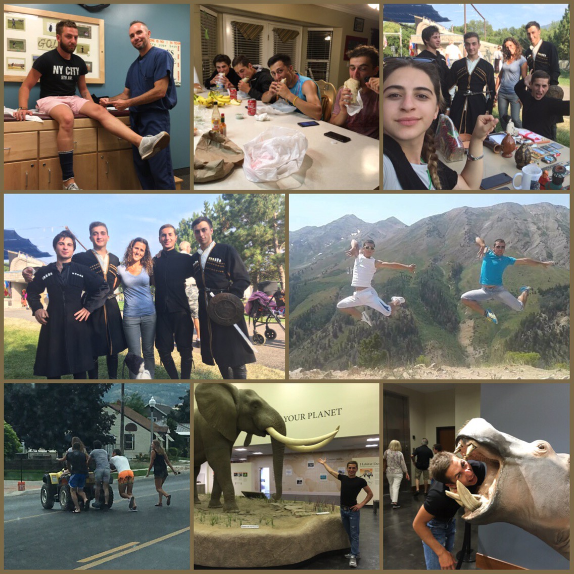 July 30 – August 6th (my birthday): Everyone that knows us, knows that we are always housing different people from different countries. We love it! This past week we took in 4 boys (Tengo, Tato, Va Ko, Onosay) from the country/Republic of Georgia 🇬🇪 for the Springville Folkfest. The Springville Folkfest had 8 other countries come out this year and when we heard Georgia was coming again, we jumped right on it and requested them. There were 5 other host families housing the Georgians and we all became instant friends/family. Much time was spent together. But oh, the fun we all had. I loved the other host families and I want to thank them for everything. I will only be able to show a fraction of our week. They kept us laughing all week long and they were so full of energy! The car rides were the best! Some of the videos is upside down or sideways but once you click on it, it is normal. But the upside down explains our week… 🙂