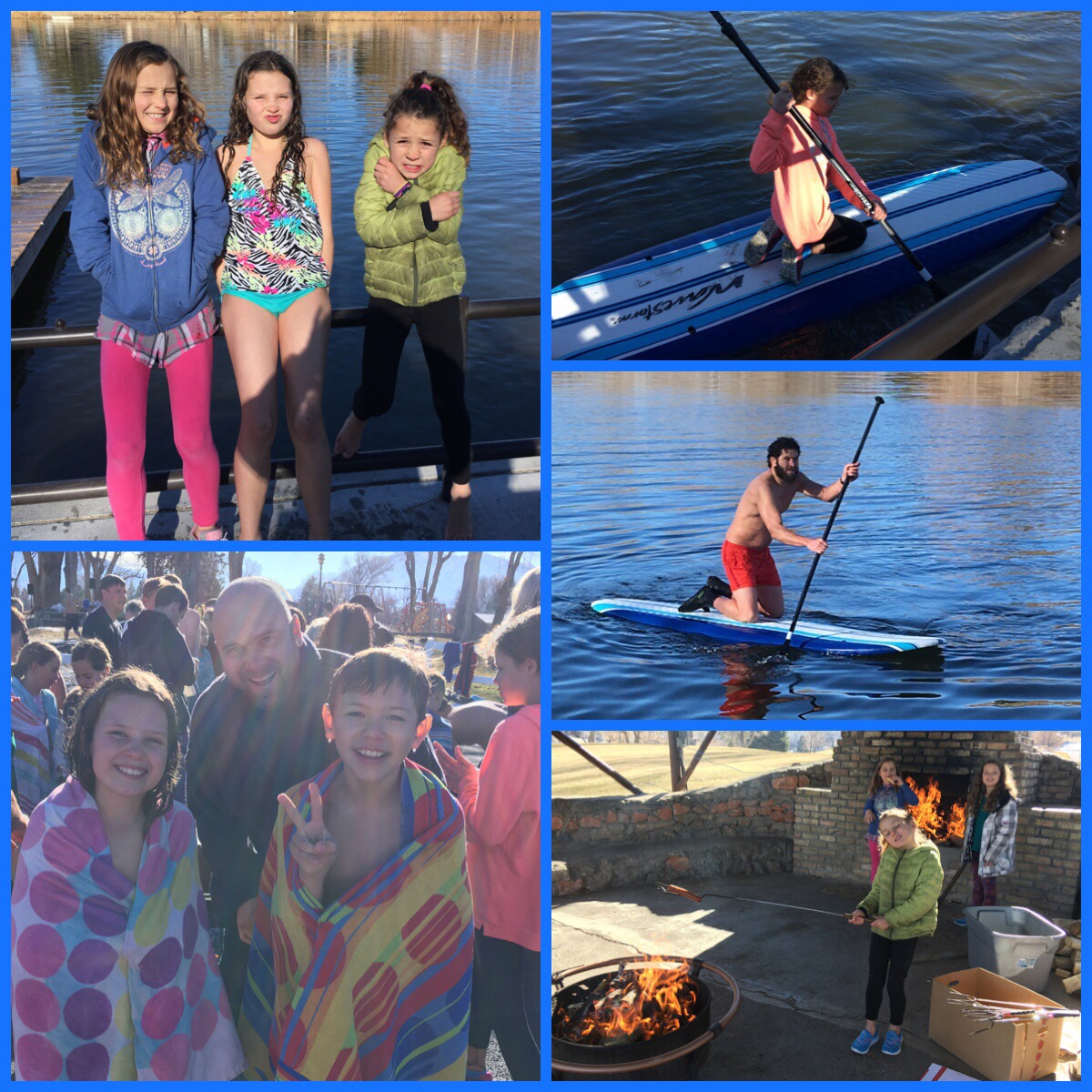 . ..This year… There was no ice in the pond, very little snow on the ground and the temperature was 42 degrees. A lot more mild then the years past but still so much fun. Corom and my 2 older girls jumped in…