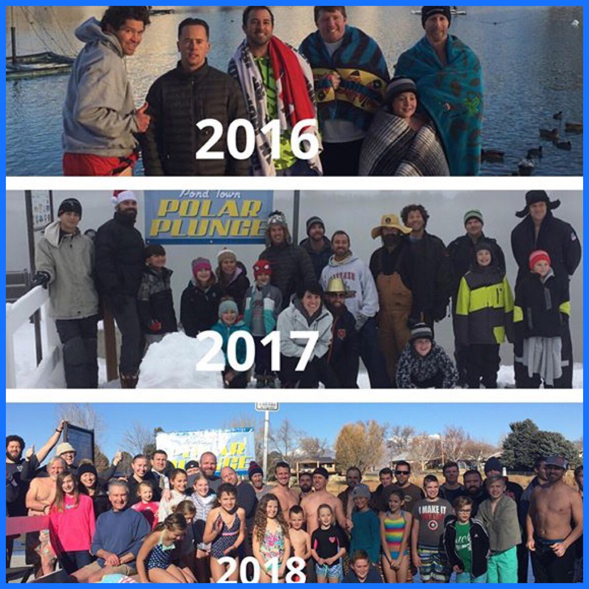 It’s amazing how much it has grown… this year was a lot warmer than the past 2. That probably helped get more people in the water. (These pictures are those that have jumped in for the polar plunge.) This was Corom’s legs from the 1st year of doing it… the ice tore his legs up! Call me a bad wife but I still find it funny…. the bottom 2 pictures are from last year with him sledding in…