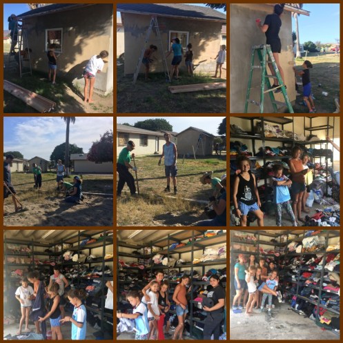 This morning me, my girls, Eliza and a couple of the orphan girls sorted out a massive pile of donated clothes. It felt like this was never going to end! Others in our group went right to work on painting, tiling, sheet rocking a little tutor/school building, and helped in the main eating area with expanding it.
