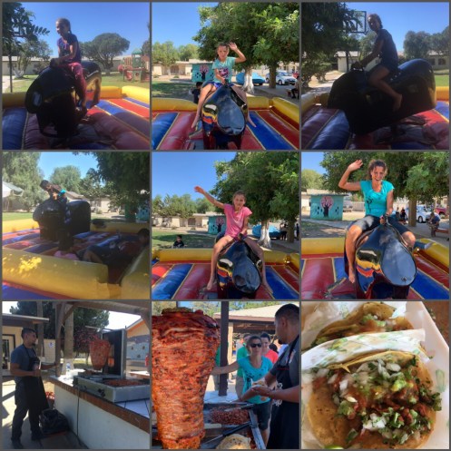 After taking care of that incident and after cleaning up all the tools, we headed into town to do a little shopping. We all met back up for a last night taco party. The kids (and all of us) were so excited. We had a mechanical bull there, Street tacos, music and fun.