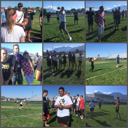 After my easy 8 mile run and coaching the HS cross country team, the host families met up at the HS this morning with Croatia, Netherlands and Russia to learn American football. It went really well and it is so fun to watch.