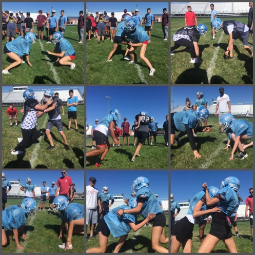 The football team taught them how to throw, kick, tackle, the plays, etc.