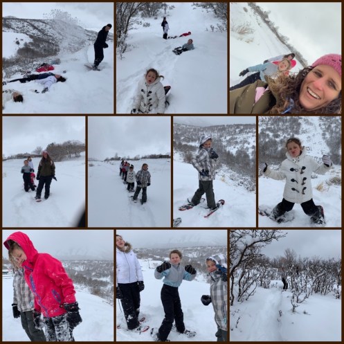 Skiing/Snow Shoeing: We have been fortunate this month to get a hold of some lift passes to go skiing/snowboarding up at Sundance Resort a couple of times. I wish we could go more but it is so expensive! We are cheap and usually go to the hills and/or mountains near us and hike up and ride down. It is fun to watch them because they have no fear. Me… I am such a wimp now. I used to ski and snowboard all the time (I worked at Sundance resort on the lifts for 13 years). Now… I just watch the girls and Corom go. π