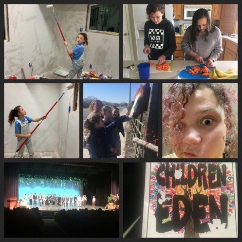 The girls helped paint the “She Shed” (which was rare for them to help), helped with dinner (which is another rare occasion), stopped to pet the horses on our walk home from church, went to Manhawk at the high school, and we went to the High School play.