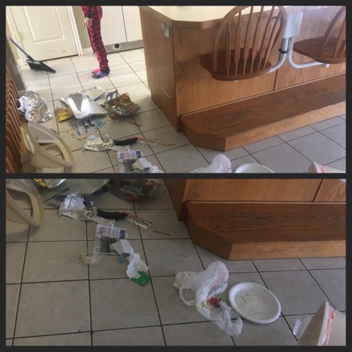 Our dang English Mastiffs got inside and tore our garbage apart. We had pizza on our counter for dinner and they ate all of that as well.