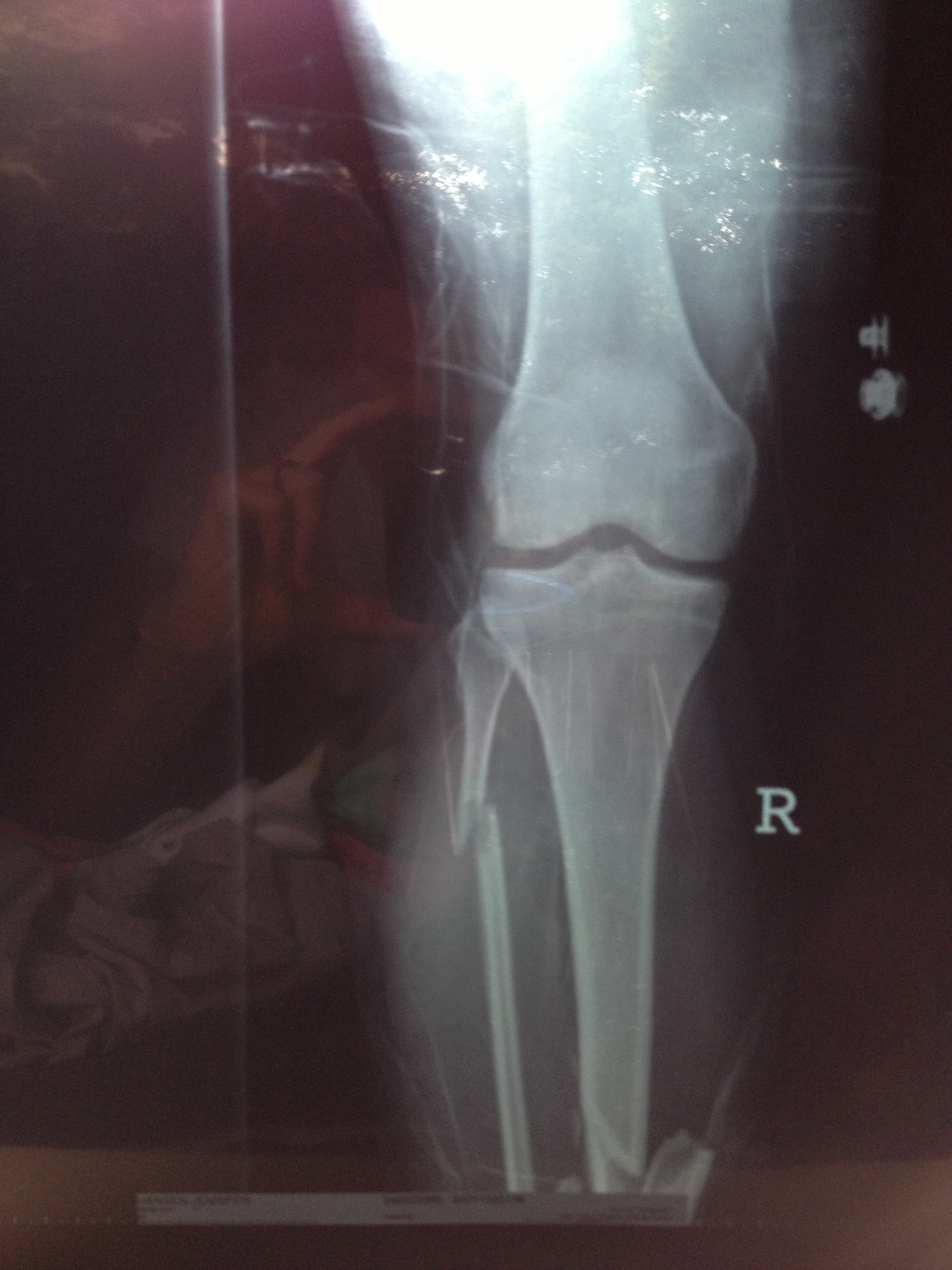 As one could imagine, this put my running on hold. I was hospitalized for two weeks followed by four months of being wheelchair bound not to mention the massive rod hammered into my right leg.The rod