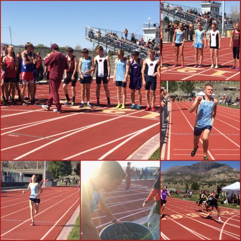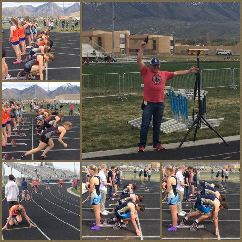 I was able to come home, get ready, get my girls ready and make it to the track meet by 7:45. The HS kids ran good miles… Most of them not their PR (I think only 2 PR’d this morning), but still ran fast times (I only had 6 qualify for this meet in the mile… 3 girls and 3 boys… It’s a tougher meet to get into and it’s based on their times.) The 800’s were next for the distance part of the meet (which was a few hours later)… The 2 boys that qualified had good races. I PR’d and the other was so close but then hit a wall the last 100. It happens. 🙂 The 2 female racers from our team ran great 800’s. They both looked strong! The 2 milers were the 2nd to last race… Oh this was a fun race to watch. Our top female and male both had huge PR’s and qualified for State!!! (He ran a 9:33 and her time was a 11:24.) It was so exciting. They looked great and did not let up. The other 2 male racers ran strong. They also PR’d. They ended off well.