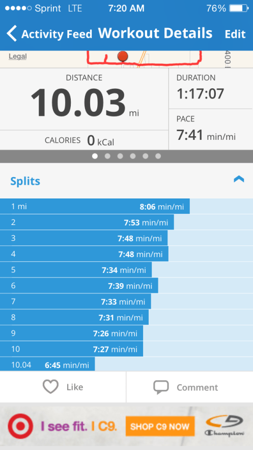 Wednesday: I went out for a 10 mile easy run. It felt good after yesterday’s workout.