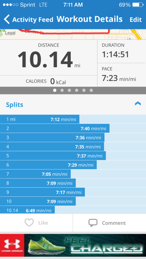 Saturday: My alarm went off at 5:15 a.m. Not happening this morning! I decided to sleep in. We attended a baptism at 8 this morning and then I went for my 17 miler at 9. I decided to try out music for the 1st time ever in my running career. 🙂 Holy Crap! Where have I been? I loved it!!! I didn’t realize how fast I was going until I was done.