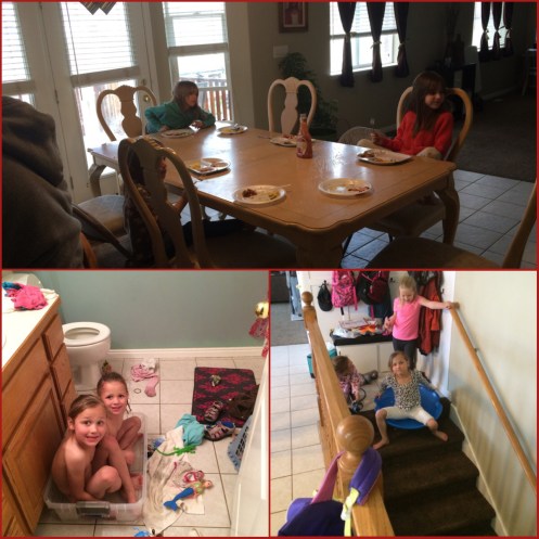 One of the kids trying to scare the coaches… Didn’t work! 🙂 We had the Paices over this evening (they have 5 little girls). They all just ran wild and played around…