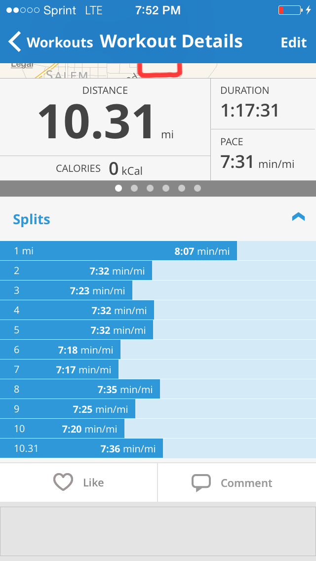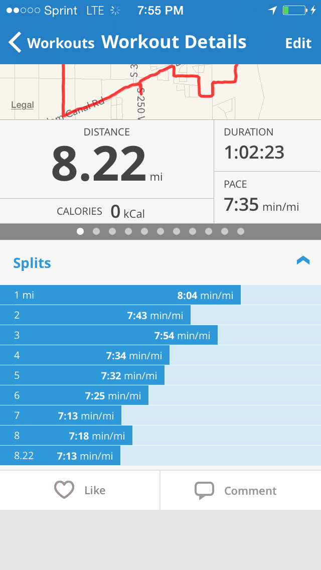 … I was only able to get a 10 1/2 miler in. I felt lousy today and sluggish so I was ok with finishing with that.