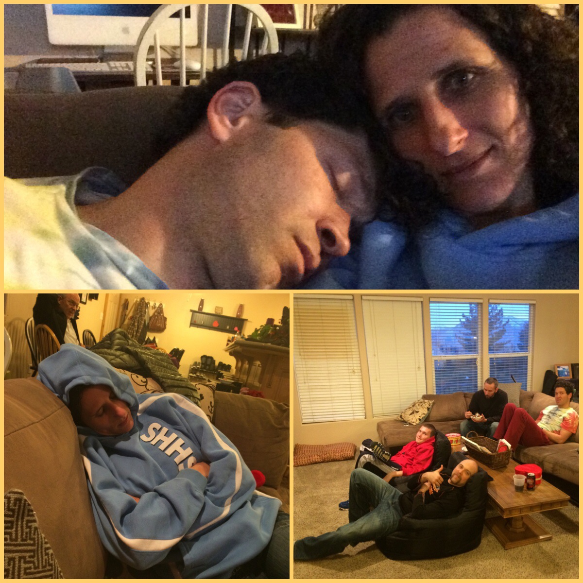 I love the Super Bowl for the sake of the food! I would say for the commercials but they have not been the best (I think) for the past couple of years… Now I was pretending to sleep and a little while later I realized Corom did fall asleep. As you can tell… He was there for the food also. 🙂