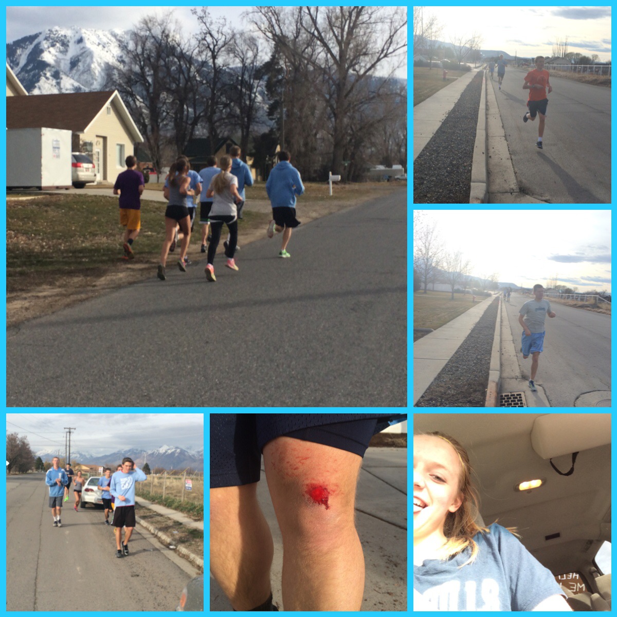 For track practice today… The kids ran a couple mile warmup, 3-4 x 800’s with a slight downhill (very slight but just enough to help them with a faster leg turnover), then a couple of mile cool down. They were beat and one left with a battle wound. 🙂