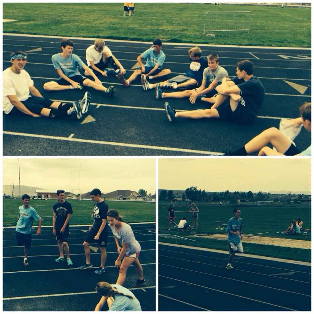 As they were stretching, I was ease dropping on their conversation. The boys were “strategizing” for Region (finals) that is being held this Wednesday and Thursday. They were talking about their times and their placing to score more points and to qualify (place) for State. It was a good conversation for ease dropping!