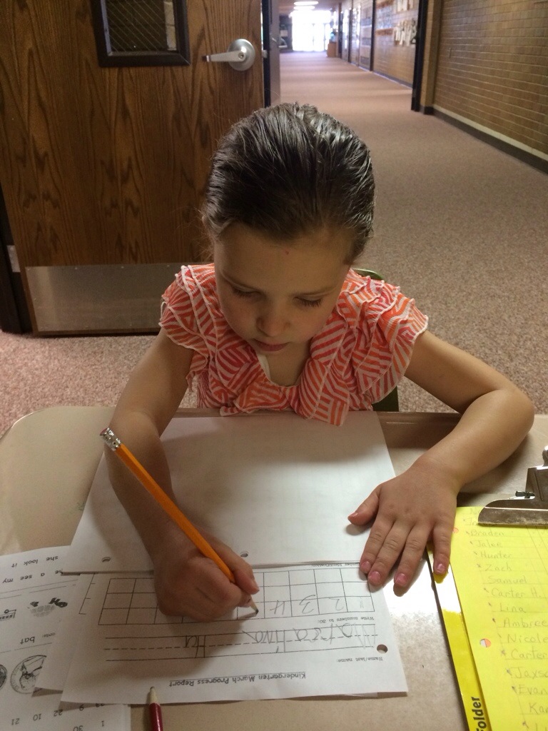 I did help in my kindergartener’s class room today… I did the testing. I love going in my kids classrooms and being involved. I get to know the teachers and the kids. They are a lot of fun to work with.