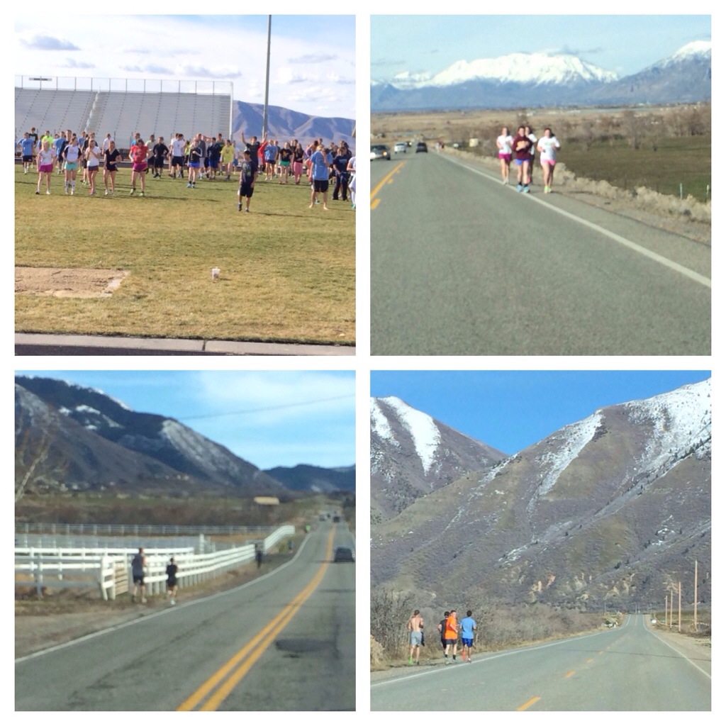 I had the kids run a 7 1/2 mile route. The 1st half is a pretty good climb and the 2nd half I had them pick up their pace (a quicker leg turnover) because it was all down hill.